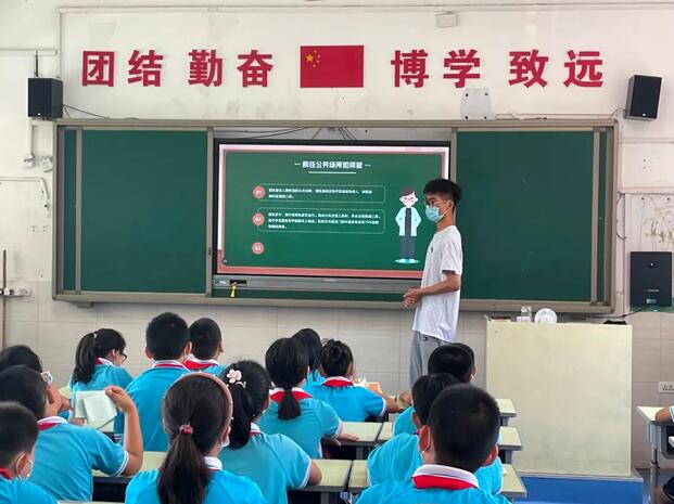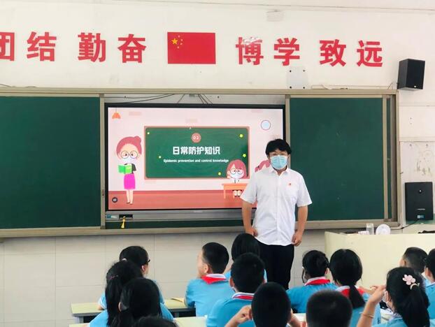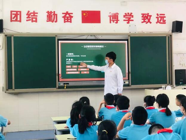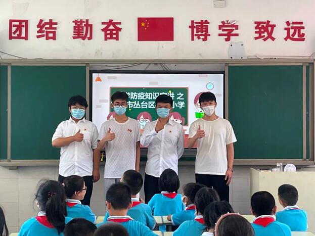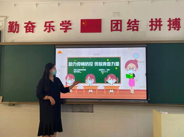 为进一步做好新型冠状肺炎常态化防控工作,精准落实管控措施,倡导健康文明生活方式,提高中小学生疫情防范意识。7月20日,beat365英国官网网站软件学院辅导员王峥老师带领燕赵逐梦队的抗疫志愿者们前往邯郸市丛台区实验小学进行科学防疫知识宣讲。