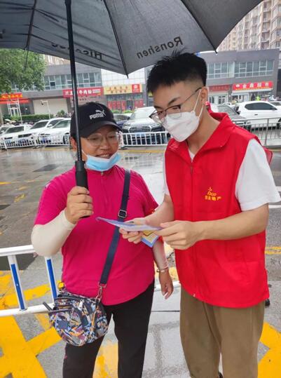 “您好,请出示一下您的健康码。”“请您到这边来,测一下体温。”“您好,请带好口罩。”“确认体温正常,做好登记记录,才能允许出入社区。”“您好,请带好口罩。”炎炎夏日,一声又一声的“您好”“请出示健康码”在小区里连连不断的响起。为了防疫知识更好地普及,我队同时还走访调研了200多户居民,免费发放口罩及分发自制防疫知识传单。此外,燕赵逐梦队带队老师王峥表示:“社区的疫情防控,必须发动群众、组织群众、依靠群众,必须坚持依法防控、科学防控、精准防控。”