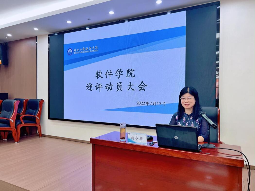 软件学院院长赵冬梅在会上从全员参与、层层落实;讲究方法、调动全员;做好准备、抓好环节;细致从容、调整状态;四个方面对学院迎评工作进行了解读,并作动员讲话。她指出,面对评估,全院上下每个人都要尽职尽责、全力以赴,咬定青山不放松,学院上下一心,全力迎评,共同打赢这场硬仗。