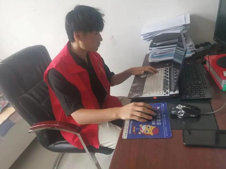 beat365英国官网网站软件学院程泗源同学在暑期看到村里招募志愿者,便第一时间加入了乡村疫情防控志愿服务工作中,协助办事处工作人员做好疫情防控工作。