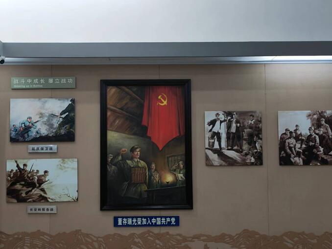 走近纪念馆,我们看到功德广场上那一尊高高的英雄塑像迎面巍然屹立,在蓝天绿叶下,英雄身着军装,左手高举炸药包,身躯盎然挺立,右手紧握导火索,再现了英雄炸敌堡瞬间的伟岸形象,体现出视死如归的大无畏英雄气概;当我们听着那一首高昂的《代代高呼董存瑞》,墙壁上那一个个用血泪写下的词句,灵动在脑海里,荡气回肠;当我们走过那一幅幅字画,一件件武器装备,仿佛重回那个年代,那场战役,身临其境,泣人泪下…..