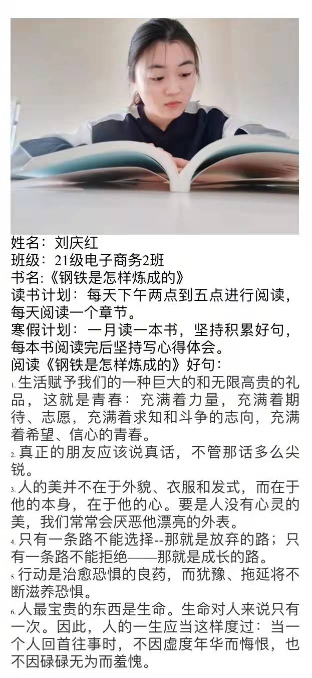 读书从来不是无用功,不读书就没有真正的学问,也不可能有欣赏能力、文采和广博的知识。同学们,我们的寒假生活已经开始,但我们的读书活动也不应停歇,让我们积极响应学院的“漫步书海,品读人生”活动,推进学院“43365读书”工程,投身到书本的海洋中吧!