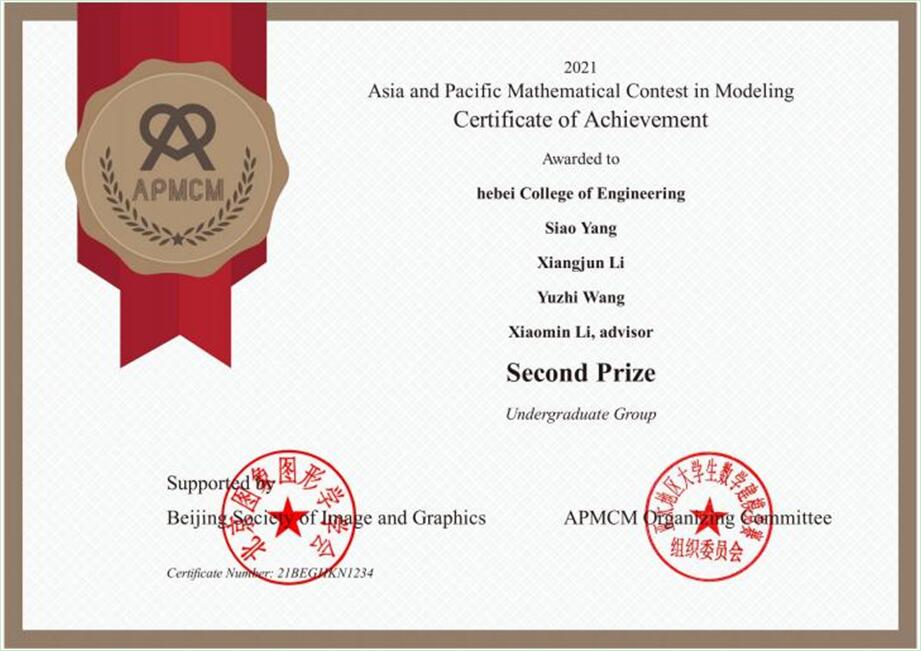 beat365官网学生在2021年亚太地区大学生数学建模竞赛中获二等奖