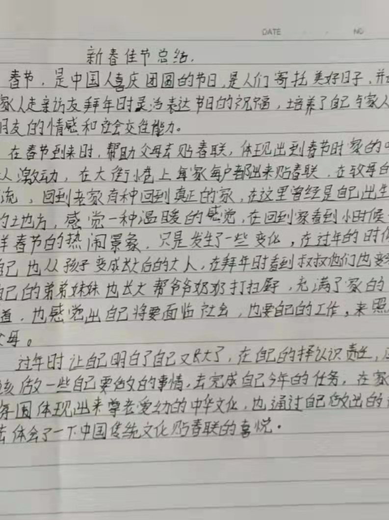 春节的情结,亲人的思念,流动的符号。同学们经历了一个又一个的新春佳节,但亲人相聚时刻的感悟相似却又唯一,每次都是不一样的解读,换来更加深刻的理解。