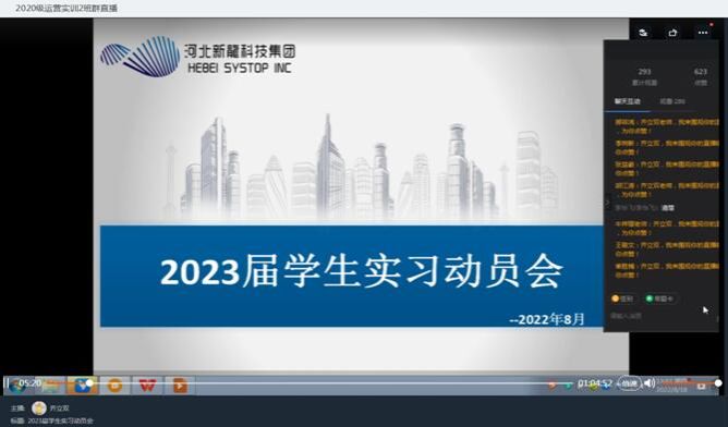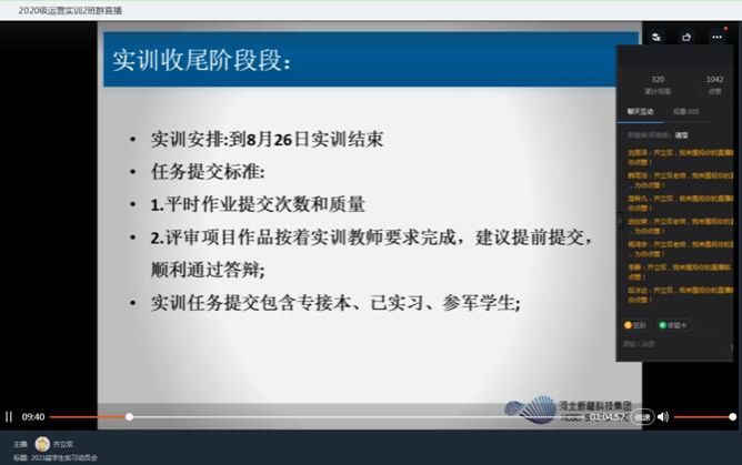 beat365官网2020级特色班学生的实训自7月4日开始,不知不觉中实训已接近尾声,为使学生了解大三阶段实训、实习、论文及实习资料整理等各项工作安排,8月18日,软件学院教质部主任齐立双老师通过钉钉线上形式组织开展2023届学生实习动员会。