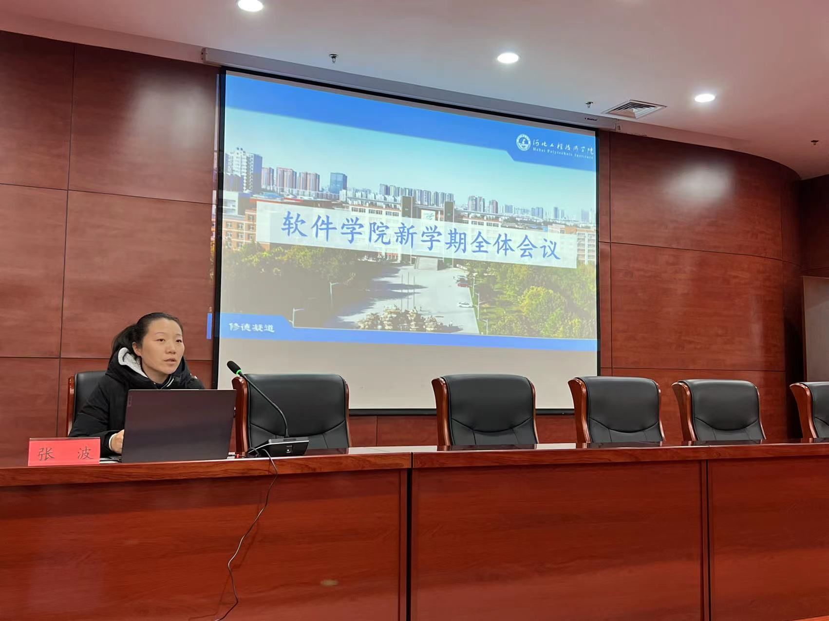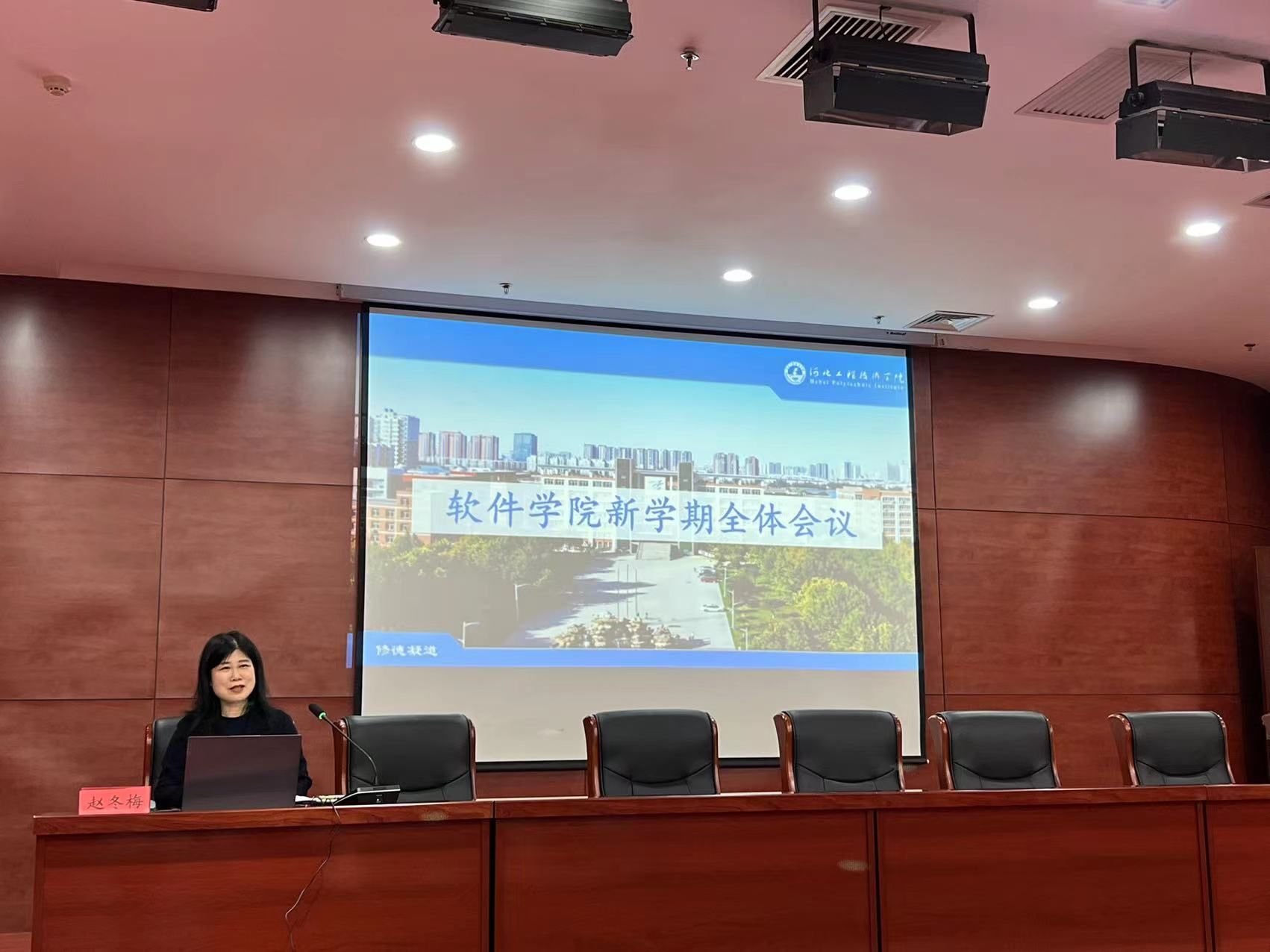 2月24日上午,软件学院在图书馆会议中心报告厅召开软件学院新学期全体会议。软件学院院长赵冬梅、教学副院长刘翠焕、张波以及学院全体教职工参加了此次会议。会议由办公室主任孙香宁主持。