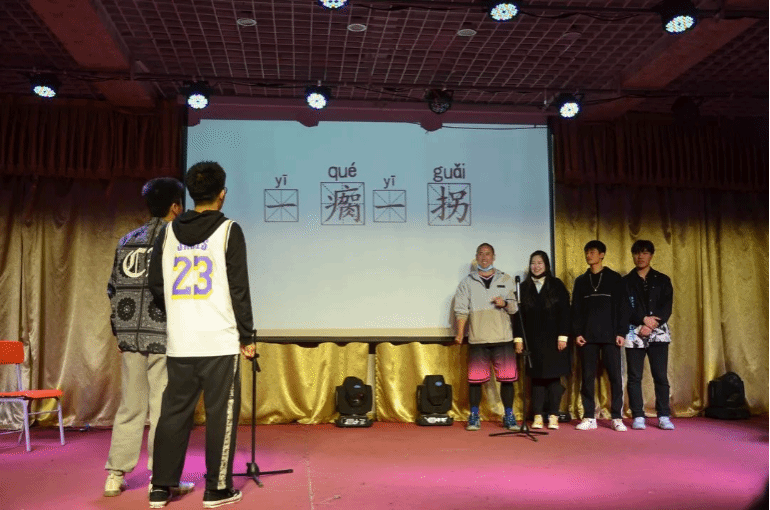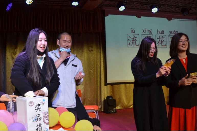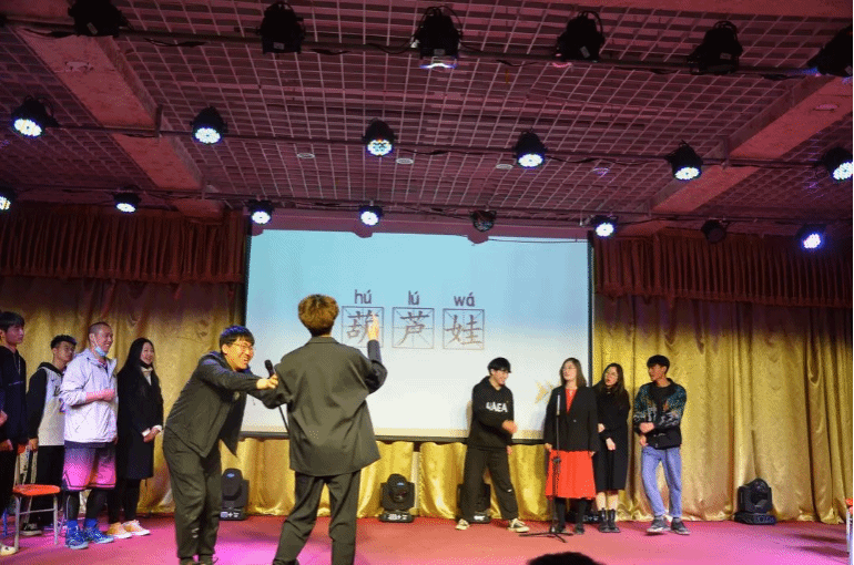 在这场综艺秀中《你画我猜》《千里传音》《中华小曲库》《中西合璧》《三人组词》等游戏给整场活动添加了幽默诙谐的元素,使学生们在活动中,放松身心,在氛围下,彼此信赖,共同进步。