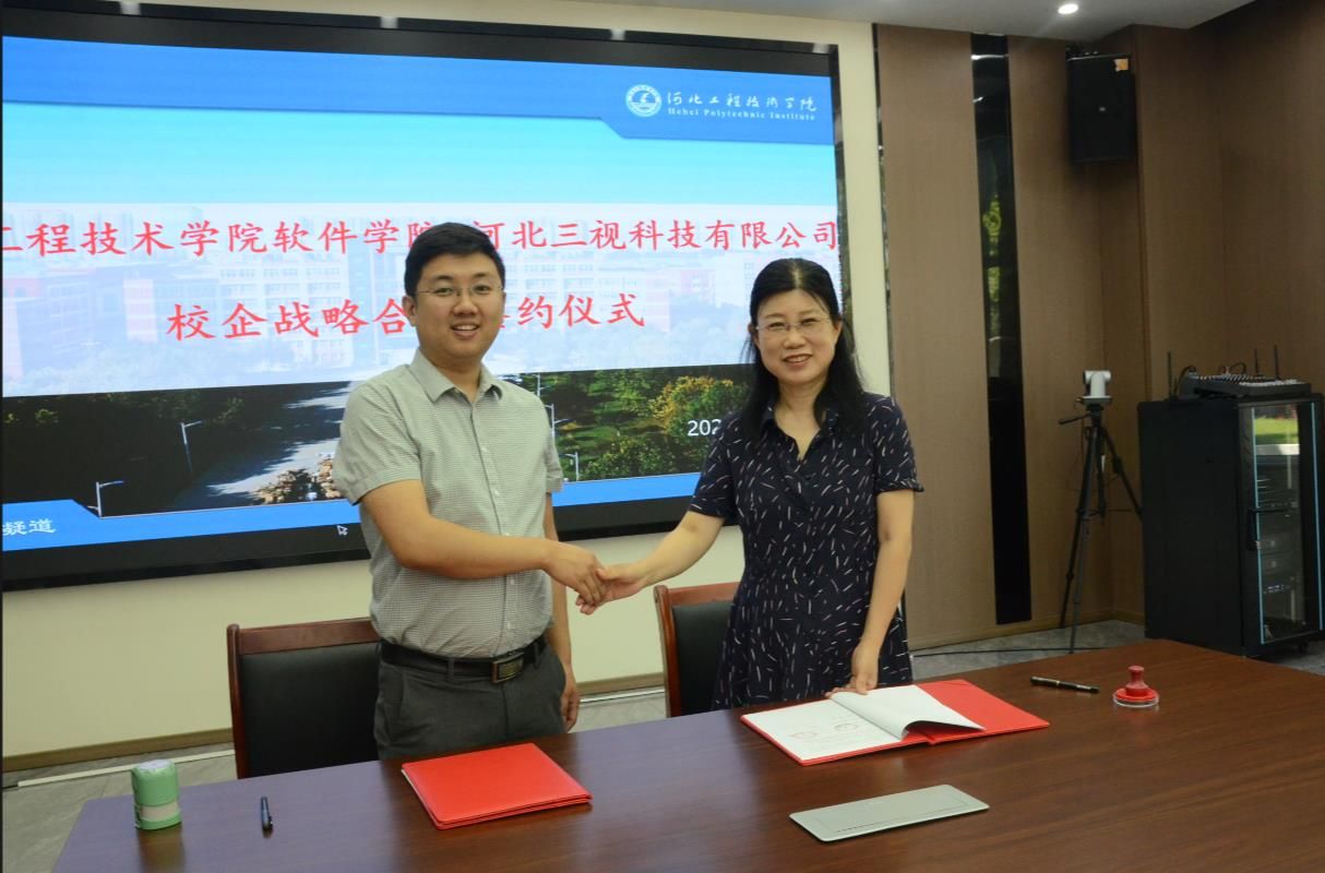 将项目引入校,为学生提供更多的实践机会一直是软件学院坚持的工作思路。学院一直将为学生积累实习、工作岗位和寻找合适的入校项目作为企业走访的目的。河北三视科技有限公司就是学院就业老师挖掘到的一家具有合作意向的企业。6月9日上午,三视科技总经理薛总带领公司技术骨干到校与beat365官网签订校企战略合作协议。