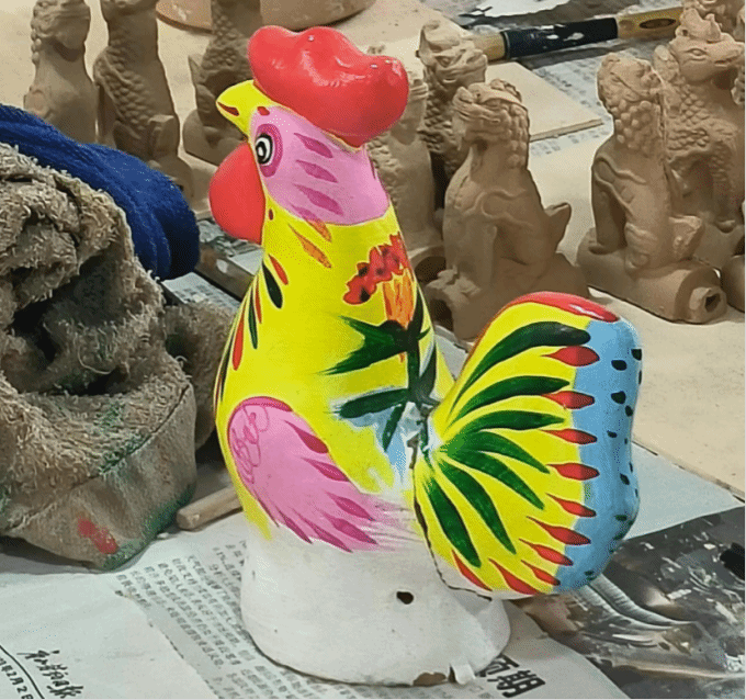 来到泥人王工作室,首先看到的就是正在工作的老师们,屋子四周摆放的都是他们绘制出来的一个个泥塑,色彩鲜艳,吸引了我们的目光,大家都忍不住称赞其神态。工作人员杨老师向研学的一行人讲解了泥塑的来源与特点,杨老师说:“泥塑表现出来的造型比较夸张,线条自然简拙,色彩生动,栩栩如生,其中,当属“大公鸡”最为著名。”随后,杨老师介绍了泥塑的历史故事并分别对其他动物以及戏曲人物进行详细介绍,她说道:每个动物的图案都有不同的寓意,并且随着时代的发展,努力向其中融入现代元素。体验制作泥塑的同学也分享了自己的感悟,她认为泥塑很有趣,是一件很考验耐心的事。对于为什么能在泥塑制作这门手艺上坚持这么久,杨老师等工作人员表示,是因为自己对其深深的喜爱。同时,他们经常组织学校的孩子们体验泥塑的制作,让孩子们感受到其中的乐趣与意义;参与各种演出与展览,让更多人认识泥塑,希望这门手艺能够保存并传承下去,得到更多的创新。