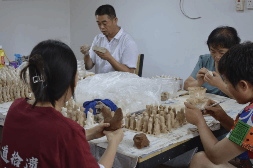 泥人体验过程中,根据老师的讲述我们了解到,王振锋和王辉是同学,他们酷爱书法和绘画,经常一起切磋技艺,一次偶然的机会接触到了玉田泥塑,便深深地被家乡艺术的独特魅力所吸引。而当看到如此宝贵的财富却面临陷落,他们心里很不是滋味,不能让非遗绝技成“绝唱”,作为玉田人我们有责任为“玉田泥塑”的发展出一份力,王振锋和王辉下决心做玉田泥塑的传承者,把玉田泥塑这个中华民族非物质文化遗产发扬光大。于是,王振锋和王辉便开始了他们漫长的玉田泥塑拯救行动。寒来暑往,7年过去了,他们四处拜师学艺,一起练习技艺,玉田泥人的特点和制作工艺终于被他们细心掌握。