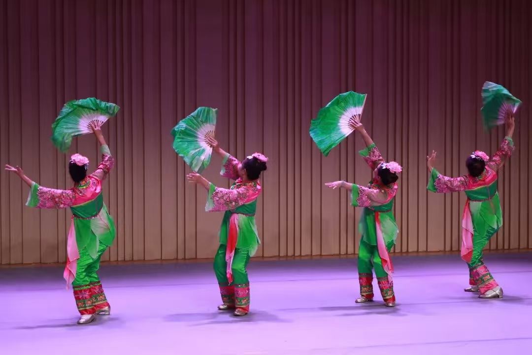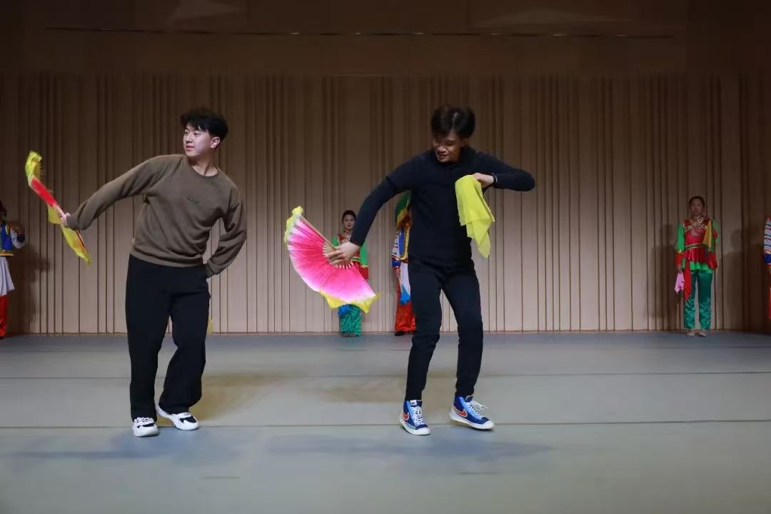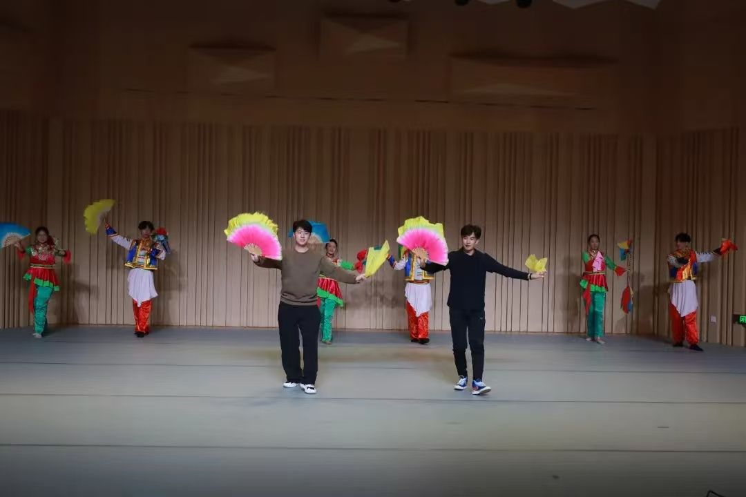 专题讲座结束后,井陉县南峪村拉花队身着绚烂夺目的服饰,手持彩扇与绸带,伴随着悠扬欢快的音乐,轻盈起舞,将井陉拉花的艺术魅力展现得淋漓尽致。他们精湛的舞技、默契的配合,赢得了现场师生的阵阵掌声与喝彩。这场非遗文化进校园活动不仅展示了井陉拉花的独特魅力,更让大家感受到传统文化的深厚底蕴与无限活力。