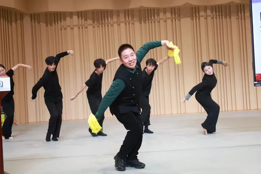 接下来,由国家级非物质文化遗产井陉拉花的传承者、拉花健身秧歌创始人张晓丹先生做《深度揭秘井陉拉花艺术之美》专题讲座。他深入浅出地阐述了井陉拉花的历史渊源,细致入微地剖析了其独特的艺术特色,并详细介绍了拉花的传承与创新。通过一系列生动的案例,张晓丹先生引领师生们走进井陉拉花的世界,让大家对这一传统艺术形式有了更加直观且深刻的认识。