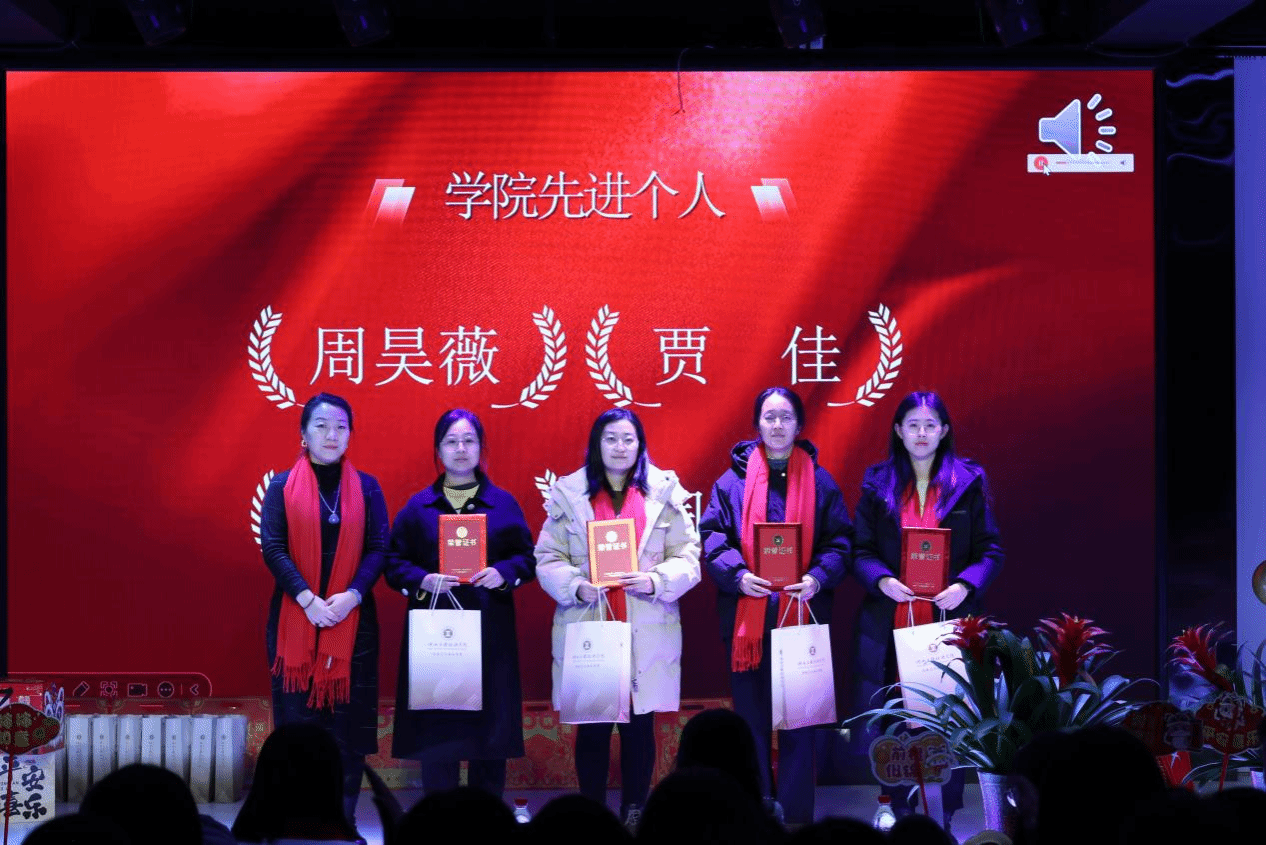 2024年度教职工表彰大会环节,将现场气氛推向高潮。旨在表彰在过去一年中,在学院不同岗位上表现出色,成绩优异,为学院发展做出重要贡献的教职工。在肯定成绩的同时,希望榜样引领的效果充分发挥出来,带动全体教职工在未来的工作中,更创辉煌。
