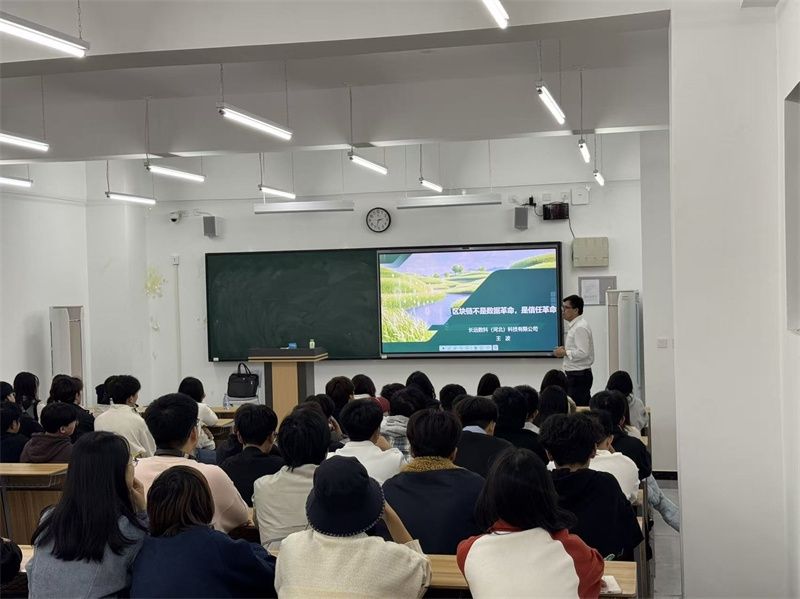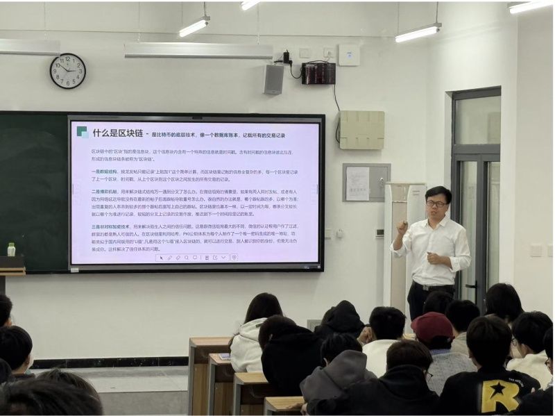 窗外的阳光渐渐西斜,教室里的氛围却愈发热烈。王波老师的每一句话,都像是一颗种子,在学生们心中种下对未来的向往。红色横幅依旧在风中轻舞,“认知行业趋势 实习岗位素养”这几个字,经由他的讲解,有了更深刻的内涵。这场讲座,不仅让学生们读懂了区块链的技术密码,更让他们看清了自己与行业未来的连接之路。