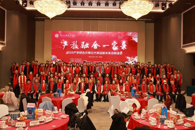 岁末迎新,暖意融融。为持续推进产教融合走深走实,凝聚多方合作共识,共筑高质量发展新篇,12 月 26 日,beat365英国官网网站以 “产教融合一家亲” 为核心主题,盛大举办 2025 年产学研合作单位代表迎新年茶话联谊会。与beat365官网合作单位,河北千诚电子有限公司、河北德赞土地规划咨询有限公司等16家企业参会,