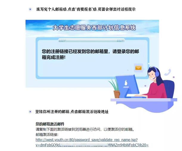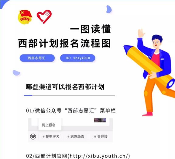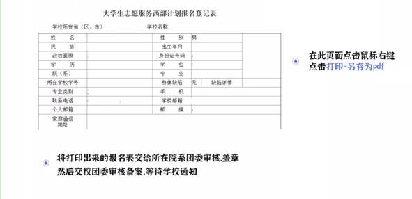 高校毕业生可登录西部计划官网(https://xibu.youth.cn/),在西部计划报名系统进行注册、填写报名表并选择三个意向服务省。下载打印报名表后,经所在院系团委审核盖章,交所在高校项目办(设在团委)审核备案。