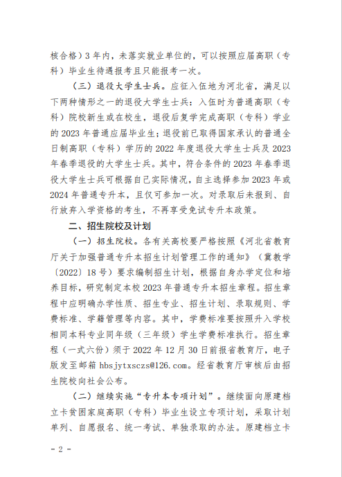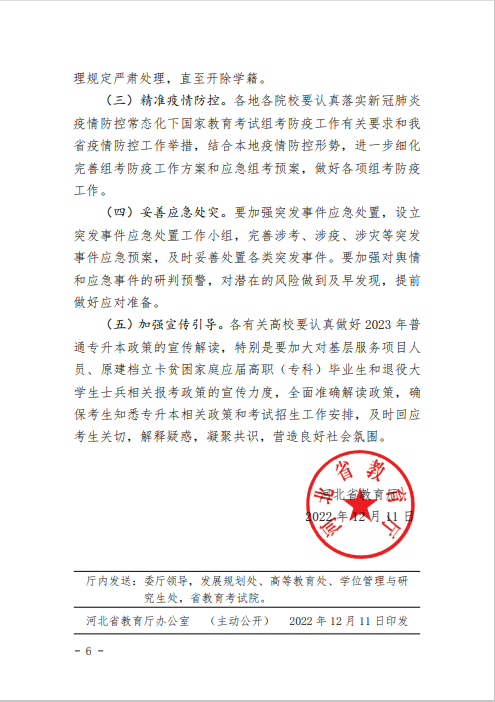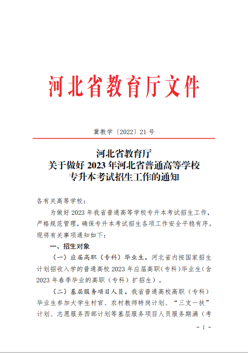 河北省教育厅关于做好2023年河北省普通高等学校专升本考试招生工作的通知