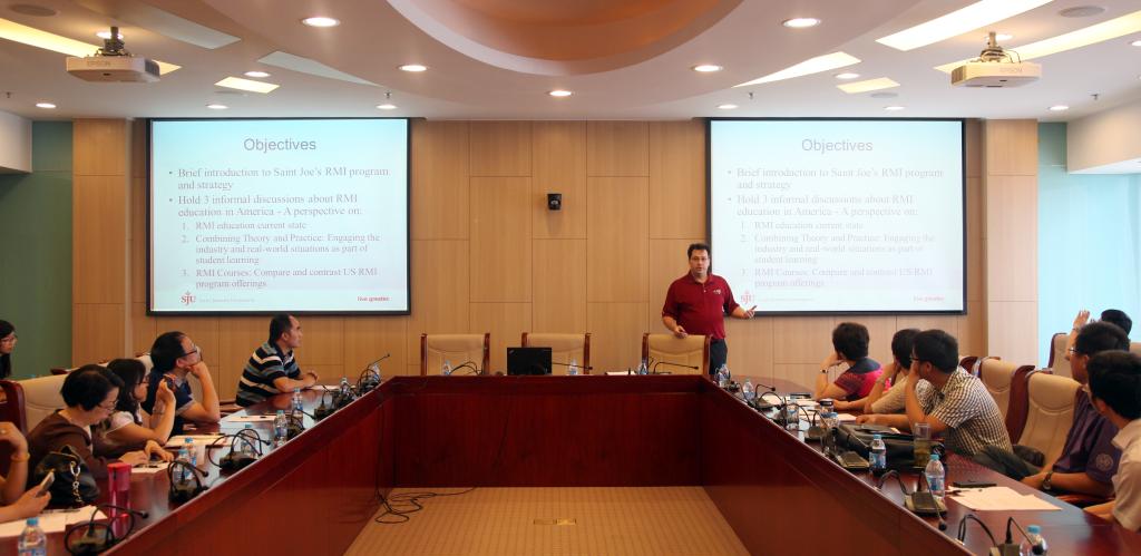 当天下午,教指委邀请了美国圣约瑟夫大学米勒副教授针对保险专硕案例教学进行了师资培训。米勒副教授结合美国保险硕士培养现状、课程设置情况、实习实践及其自身案例教学心得,细致讲述了案例开发的原则、方法等。随后,他还就如何有效发挥实践教学在学生培养过程中的优势和作用进行了阐述。培训中米勒副教授深入浅出,形象生动,积极互动,赢得了与会者的一致好评。