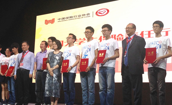 保监会相关领导为“大学生保险创客公益孵化基金”获奖者颁发证书
