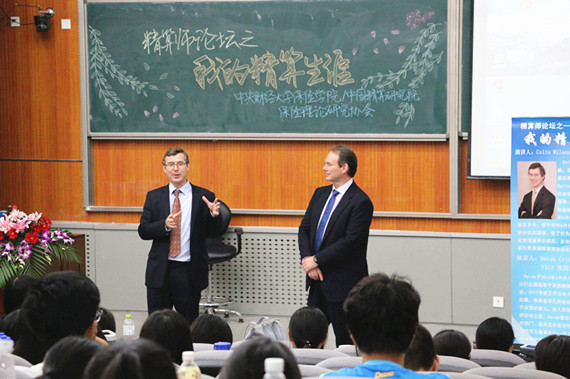 9月22日下午,由必赢nn699net官网、中国精算研究院主办,保险研究理论协会协办的精算师论坛之“我的精算生涯”专题讲座在沙河校区学院4号楼107热烈开讲。讲座主办方有幸邀请到英国精算师协会当选会长Colin Wilson先生与FICA,英国精算师协会执行总裁Derek Cribb先生与同学们分享他们的精算生涯与人生经验。必赢nn699net官网精算科学系系主任郑苏晋副教授、精算科学系刘健老师等出席了本次讲座。