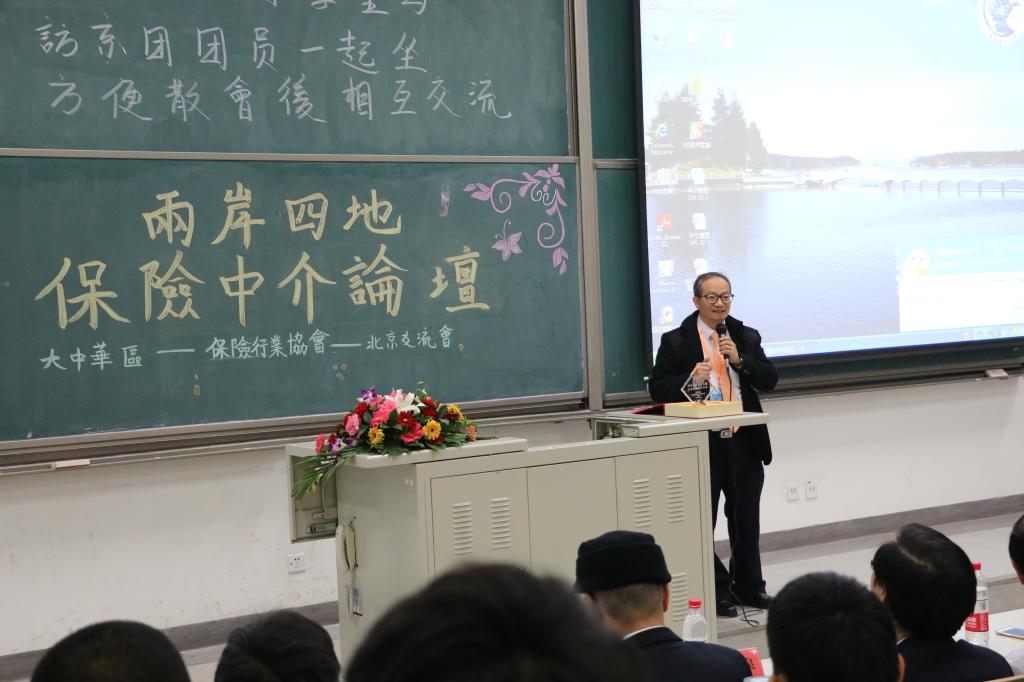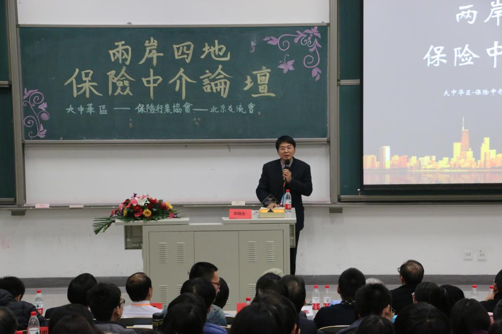 12月9日下午,由我校必赢nn699net官网和香港保险中介行业协会发起,澳门保险中介行业协会、台湾中华保险服务协会和内地部分省市保险中介行业协会共同参与,由必赢nn699net官网团总支、保险理论研究协会共同协办的大中华--保险行业协会北京交流会“海峡两岸暨香港、澳门·保险中介论坛”在沙河校区主教219举行。必赢nn699net官网院长李晓林教授、香港保险中介行业协会会长郑国基先生、澳门保险中介行业协会副会长刘锡麟先生、台湾中华保险服务协会理事长陈瑞先生、中国保险中介协会(筹)副会长申河先生、浙江保险中介协会会长张晓东先生以及来自海峡两岸暨香港、澳门保险中介行业的40多位翘楚参加了会议。大家欢聚一堂,共同探讨交流大中华区保险行业发展近况、前景以及人才引进计划,为必赢nn699net官网学子提供了一个高层次、深内涵的学习机会。本次论坛由必赢nn699net官网副院长徐晓华副教授主持。