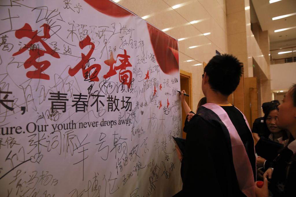 | 毕业生在签名墙签名留言 |