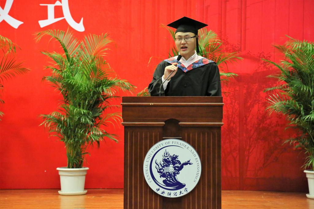 在学生代表发言环节,必赢nn699net官网2014级保险学专业博士研究生王妲作为研究生毕业生代表发言。她分享了自己的求学感悟,从设定目标到努力争取,再到圆满完成学业,优秀的师生让她学会了见贤思齐;开放的时代,宽松的校园环境让她明白每个保险学子都应当活出自己的风采。代表本科生毕业生发言的是施潇宇同学,他以幽默诙谐的语言回顾了四年的生活,从成长、从容、情怀三个方面展现了一个本科生在大学的蜕变,他的分享引起在场毕业生的深刻共鸣,会场不时爆发出热烈的掌声。2014级社保班韦可欣同学作为在校生代表回忆起学长学姐对学弟学妹们的关心帮助,向学长学姐送上真挚的感谢与美好的祝愿。2013级精算专业本科生学生家长王广河先生代表广大亲友团向毕业生送上了最真挚的祝福。从照顾陪伴到见证成长,家长们为全体毕业生今天的成就而骄傲自豪。