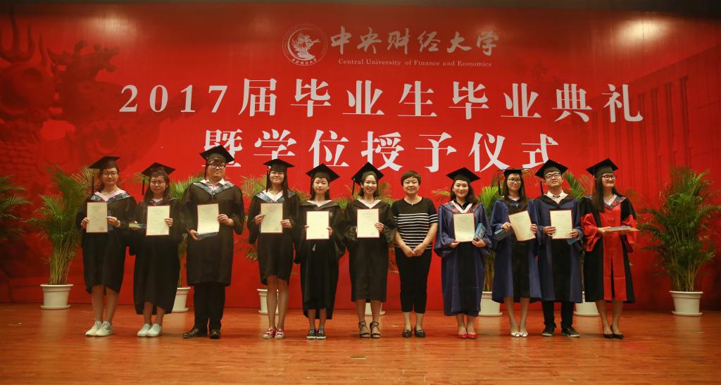 方志平老师宣读了表彰2017届优秀毕业生的决定,由党委书记王颖老师、副院长周桦老师为获奖同学逐一颁发了证书与纪念品,勉励同学们进入社会之后再接再厉,时刻展现保险学子优秀的品质与专业的素养。伴随着欢快的旋律,必赢nn699net官网副院长周明、徐晓华两位老师逐一宣读毕业生名单,李晓林院长分别为研究生与本科生进行了拨穗正冠、颁发毕业证书并合影留念。