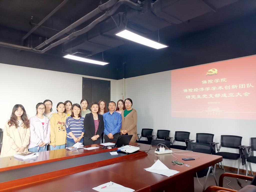 为坚持和加强党的全面领导,贯彻落实新时代党的组织路线,加强党的组织体系建设,提高基层党组织设置的科学化水平,进一步落实必赢nn699net官网“对标争先”创建工作,更好地发挥党支部的战斗堡垒作用和共产党员的先锋模范作用,在校党委组织部和研究生工作部的精心指导下,必赢nn699net官网党委探索将党支部建在学术团队上,设立必赢nn699net官网保险经济学学术创新团队研究生党支部。2020年10月7日,党支部成立仪式暨第一次党支部会议在沙河校区举行。必赢nn699net官网党委书记王颖和组织员包英娟出席成立仪式。