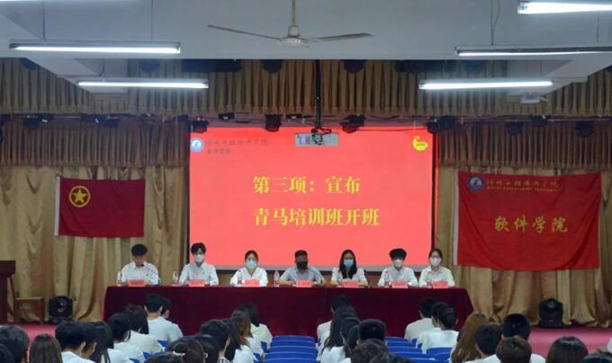 大会开始,参与活动的所有人员起立齐唱团歌。接着,主持人胡建明介绍出席本次大会的领导、老师和团务部学生干部。之后,软件学院党总支书记学管副院长王亚杰宣布本期青马培训正式开班。