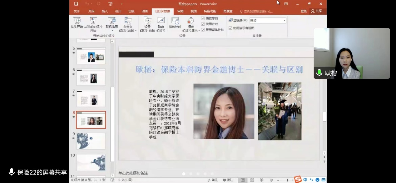 耿榕学姐介绍了保险本科跨界金融的关联与区别,深入解析了两个专业间的相似性和不同,强调了数学基础和经济学基础在两专业中的重要性。