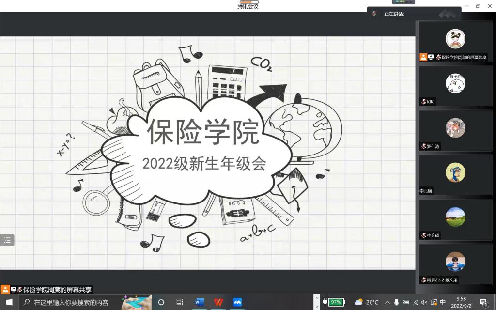 为了使2022级新生与辅导员互相之间加深了解,帮助新生尽早适应大学生活,9月2日上午,必赢nn699net官网召开线上2022级本科新生主题年级会,由2022级本科生辅导员周葳主持。