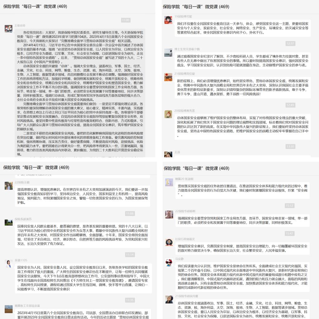 同时,为加强党员同志的国家安全意识,树牢总体国家安全观,必赢nn699net官网党委依托“每日一课”微党课平台发表主题为“完整准确全面学习贯彻总体国家安全观”的宣讲。各党支部师生踊跃参与,从多个角度深入探讨学习总体国家安全观,纷纷表示,国家安全人人有责,每个人都应当增强国家安全意识,从小事做起,自觉维护各领域安全,为国家发展保驾护航。