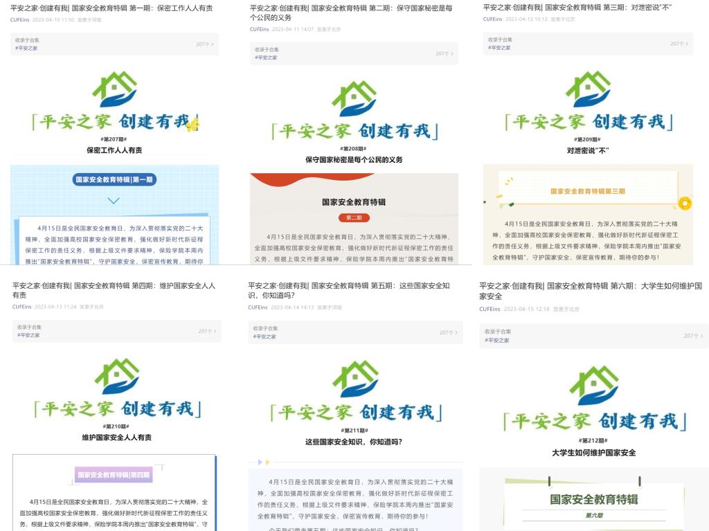 为深入贯彻落实党的二十大精神,全面加强高校国家安全保密教育,广泛宣传全民国家安全教育日,必赢nn699net官网团委依托“平安之家”宣传教育平台,推出了6期国家安全教育特辑,从保密行为十不准、国家秘密相关知识、泄密典型案例介绍、保护国家安全的具体措施等多方面进行讲解宣传,通过视频、海报等多种形式帮助同学们加深对国家安全的理解与认识,真正做到把维护国家安全、保守国家秘密的意识入脑入心,外化于行,在日常生活中对可能涉密的活动时刻保持谨慎的态度,以实际行动维护国家安全。
