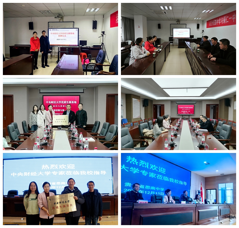 12月10日-15日,贵州招生组先后前往贵州省铜仁第一中学、贵州省思南中学、贵州省黔南州都匀一中,与各高中校领导就学校基本情况、高校招生情况进行深入交流,并进行了优质生源基地授牌活动。其中,招生组受贵州省思南中学邀请,在校内进行中财大专场宣讲会,到场参会学生200余人,反响积极热烈。