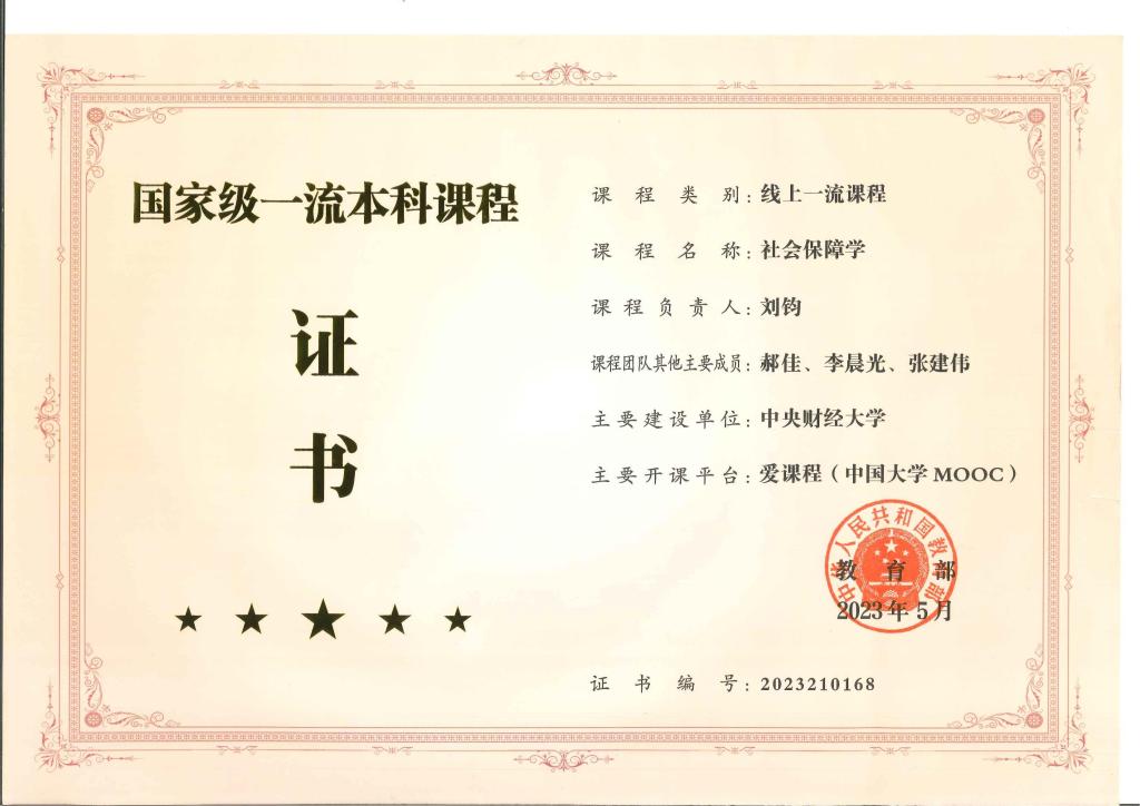 《社会保障学》获评国家级线上一流本科课程