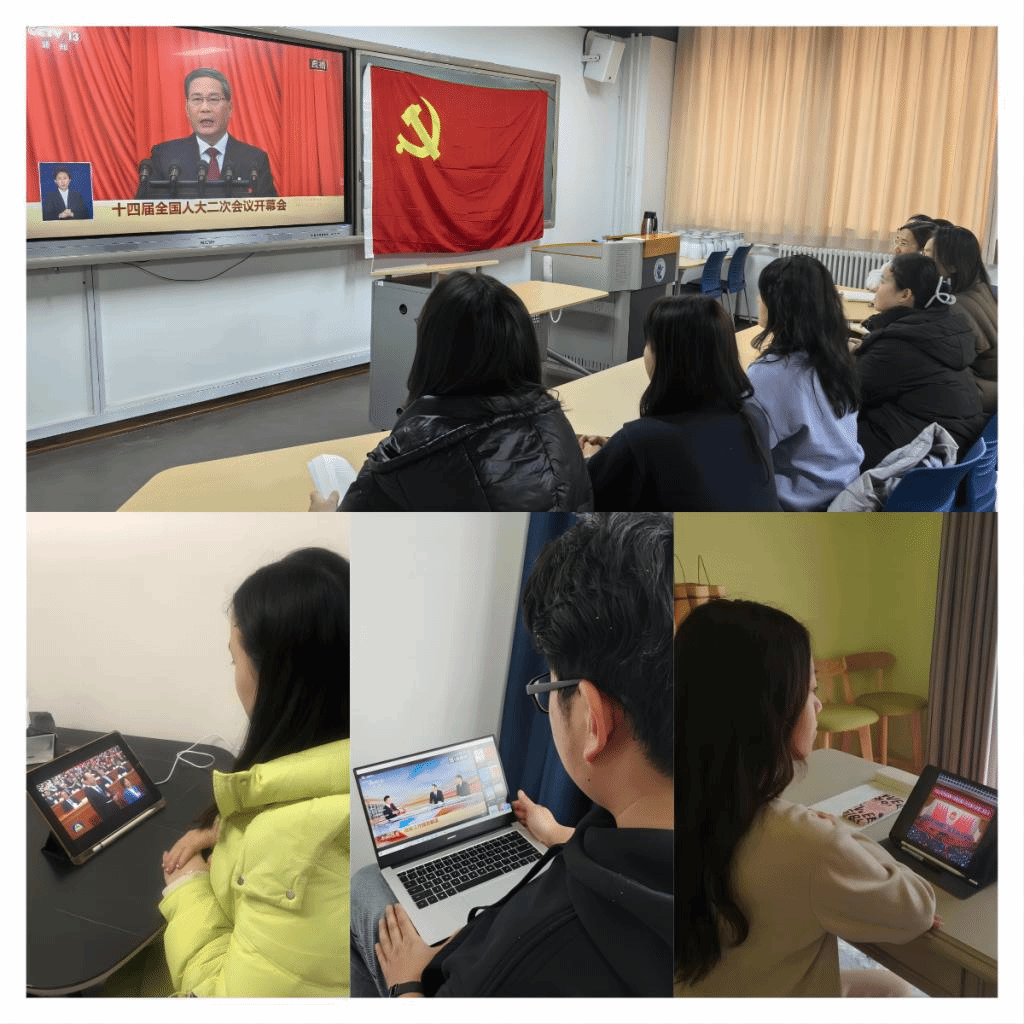 各党支部积极组织党员们通过电视、网络直播、学院“每日一课”微党课平台等形式学习政府工作报告,切实提升理论学习的深度和厚度。