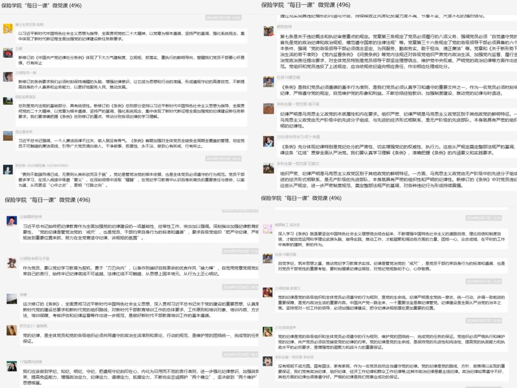 师生党员依据每日学习的《条例》章节开展交流,讨论氛围热烈,《条例》学习做到全覆盖。