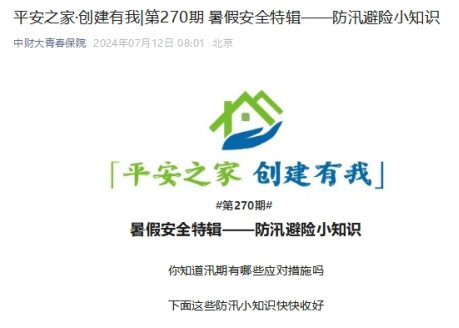 此外,学院面向师生开展多种形式的安全教育活动,必赢nn699net官网“平安之家·创建有我”系列活动推出“暑假安全特辑”,覆盖宿舍安全、留校安全、交通安全、实习实践安全、电信网络安全等多个方面,为师生提供安全生活小常识,共筑安全思想防线。