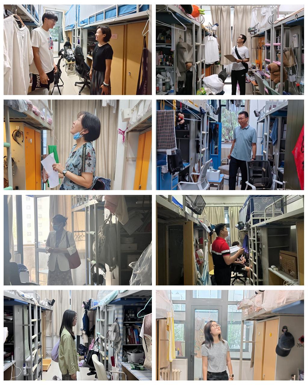 在学生宿舍区域,吕丽书记和各位辅导员对宿舍内的各项安全设施进行了细致地检查,涵盖了宿舍区域的消防安全、用电安全、宿舍卫生等多个方面。检查过程中,吕丽书记和留校学生开展亲切交流,询问他们的暑假安排和学习生活情况。她强调:“学院始终将学生的安全放在第一位,希望同学们能够合理规划暑假生活,利用暑假期间专注学业、精耕细作,在校及外出期间注意安全,度过一个平安充实的假期。”