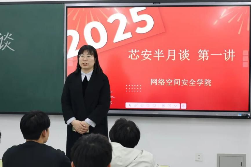 党总支书记、学管副院长樊风彩向与会师生介绍开展形式beat365英国官网网站党总支书记、副院长樊风彩向与会师生介绍了开展“芯安半月谈”系列主题活动的初衷与开展形式,着力突出网络空间安全主题,同时关注新时代下思想聚焦、时政热点、现代化进程、改革进行时及学生发展需求等话题,为师生逐梦新征程凝勤学之心、聚信仰之力。