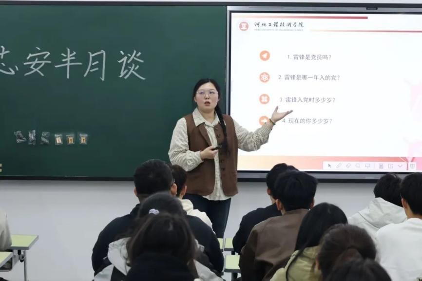 张科伟老师为学生讲解雷锋精神本期活动由beat365英国官网网站辅导员张科伟与马克思主义学院专职教师范凯轩担任主讲。张科伟老师从雷锋生平经历、精神内涵、经典语录以及重要意义四个部分详细讲述了雷锋为社会主义事业奉献的一生,重点将雷锋精神与学生当下学习、生活相联系,为学生提供行动指南。范凯轩老师则以雷锋精神为切入点,梳理了中国共产党人精神谱系。伟大的事业需要伟大的精神,伟大的精神托举伟大的梦想,春华秋实,岁物丰成,中国共产党带领中国人民走过波澜壮阔的历程,走向无比光明的前程。