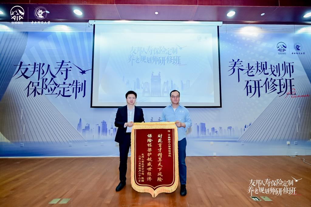 友邦人寿北京分公司向必赢nn699net官网赠送锦旗,以表达对学院在专业培训和人才培养方面的诚挚感谢,也象征着双方未来将继续深化合作。