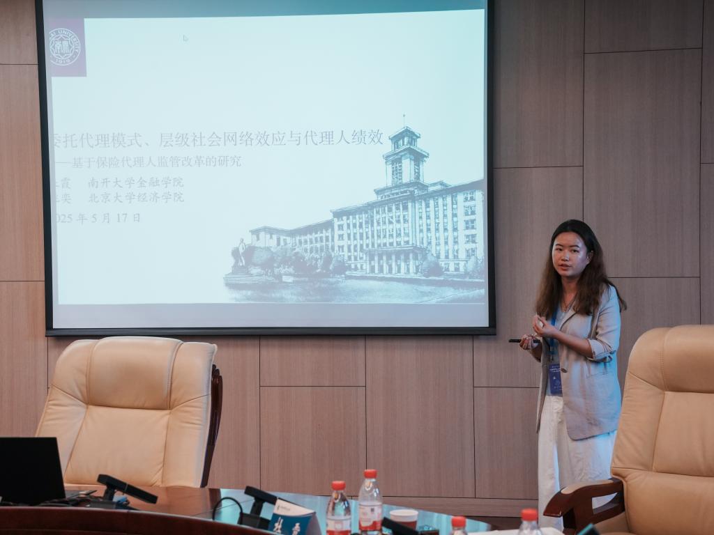 第三位汇报的嘉宾是来自南开大学金融学院的讲师杜霞,她汇报的题目是《委托代理模式、层级社会网络效应与代理人绩效——基于保险代理人监管改革的研究》,为大家介绍了在外生政策冲击之下,委托代理模式下保险代理人的业务结构、业务质量及离职决策等行为的变化。