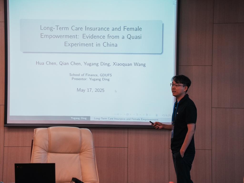 第四位汇报的嘉宾是来自广东外语外贸大学金融学院的丁宇刚副教授,他汇报的题目是《Long-Term Care Insurance and Female Empowerment: Evidence from a Quasi Experiment in China》,为大家分享了长期护理保险对女性劳动的释放作用,以及对后者议价能力提升的影响。
