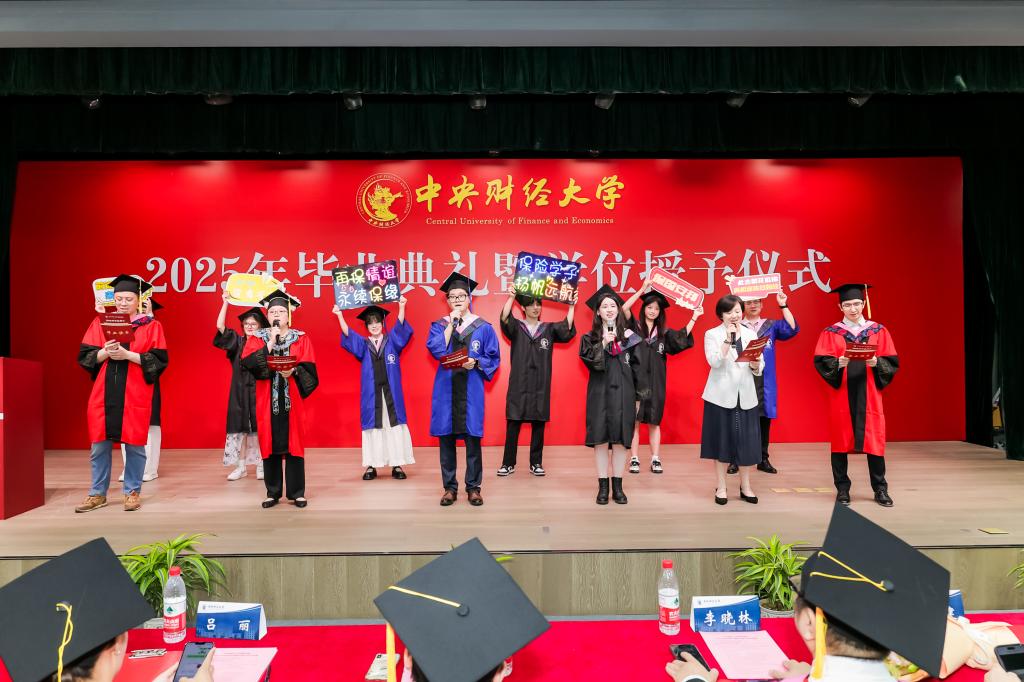 在学位授予仪式环节,王丽珍副院长、郑苏晋副院长分别宣读《关于2025届本科生毕业及授予学士学位的决定》《关于2025届研究生毕业及授予博士、硕士学位的决定》。随后,学位授予仪式正式开始,毕业生们依次上台,周桦院长、吕丽书记、王丽珍副院长、郑苏晋副院长为毕业生拨穗、授予学位。当毕业生们身着学位袍,接过学位证书,接受拨穗的那一刻,现场响起了热烈的掌声,这是对他们学业有成的肯定,更是对他们未来发展的美好祝愿。
