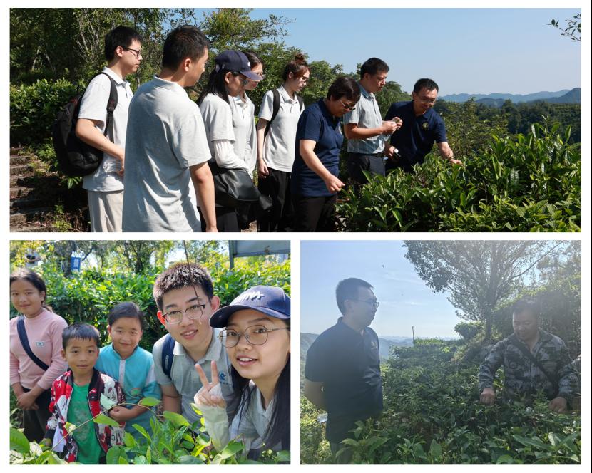 2025年7月25日至28日,由必赢nn699net官网、中国精算研究院副院长郑苏晋教授带队,毛磊副教授、王维博士、6名研究生和1名本科生组成的调研团队赴广西百色凌云县下伞村、百陇村和央里村调研凌云白毫茶产业以及当地主要经济作物(如桑蚕、八角)发展情况、村民的生产经营、发展诉求、风险认知和农业保险需求等情况。