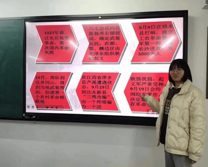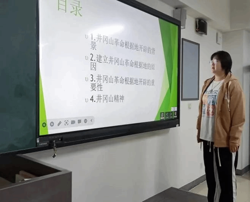 2022级网络空间安全3班吴会霞同学讲解了建立井冈山革命根据地的意义。大革命失败后,在全党为寻找中国革命新道路而进行的艰苦探索中,毛泽东率领湘赣边界秋收起义部队上井冈山,进行创建革命根据地、开展工农武装割据的斗争,开辟了中国革命新道路,代表了中国革命发展的正确方向。井冈山革命根据地的创建,是中国革命斗争史上的伟大创举,开辟了建立农村革命根据地,以农村包围城市、武装夺取政权的正确道路,开启了马克思主义基本原理同中国具体实际相结合的伟大进程,孕育了坚定信念、艰苦奋斗,实事求是、敢闯新路,依靠群众、勇于胜利的井冈山精神,成为中国革命不断走向胜利的光辉起点。这一伟大实践,对中国革命道路的探索,对中国共产党和人民军队成长具有关键意义。