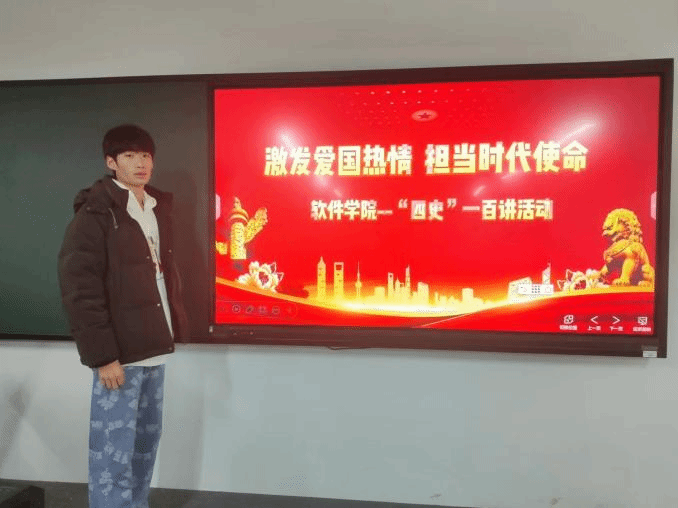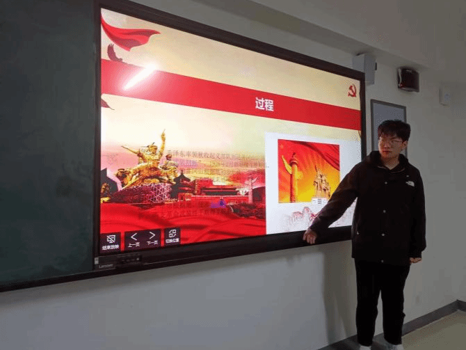 网络空间安全一班的成博浩同学向大家介绍了朱毛会师的历史背景,让大家更容易理解演讲内容。网络空间安全三班的杜文博同学讲解了朱毛会师所涉及的地区,可以使同学们形成框架,印象更深刻。软件工程一班的闫家耀同学重点讲解了古田会议,让同学们更进一步了解了朱毛会师以及红军的建军原则。软件工程二班的吴政阳同学向大家介绍了朱毛红军称谓的由来,让同学们对“朱毛会师”有了更深一步的了解。软件工程三班的王新远同学着重强调了朱毛会师,组建劲旅的历史意义。