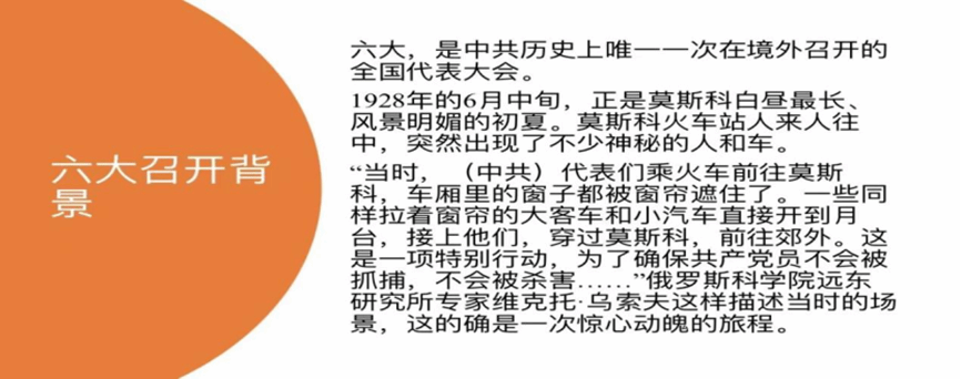 1928年,在中国革命最艰难的关头,为了国家和民族的前途命运,142名中共代表不远万里来到莫斯科郊区五一村,召开了会议,这次会议是中国共产党唯一一次在海外召开的全国代表大会,是中国革命从低潮走向高潮的重要转折点,对中国革命的复兴和发展起到了积极推动的作用,这次会议便是中国共产党第六次全国代表大会。下面,让我们走进四史教育专题第二十一讲:中共六大 低潮奋进。